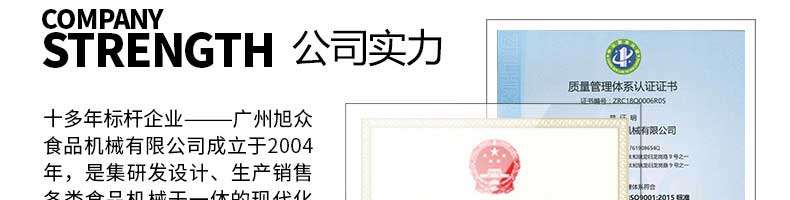 廣州旭眾食品機械有限公司是一家集科研開發(fā),生產設計,營銷服務為一體的現代化生產企業(yè)?,F代化生產車間,精湛制造技術,所產機械歷經市場重重考驗,不斷贏得海內外客戶的贊譽。